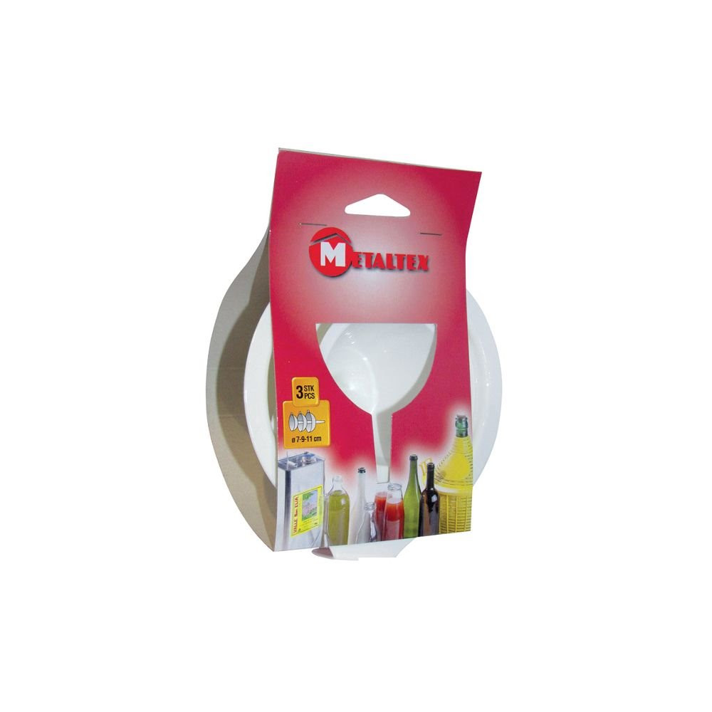 Le lot de 3 entonnoirs METALTEX est un indispensable de la cuisine, aussi bien pour la pâtisserie que pour transvaser huiles, sauces ou préparations liquides sans éclaboussures. Fabriqués en plastique solide et alimentaire, ces entonnoirs sont conçus pour durer et résister aux utilisations quotidiennes.