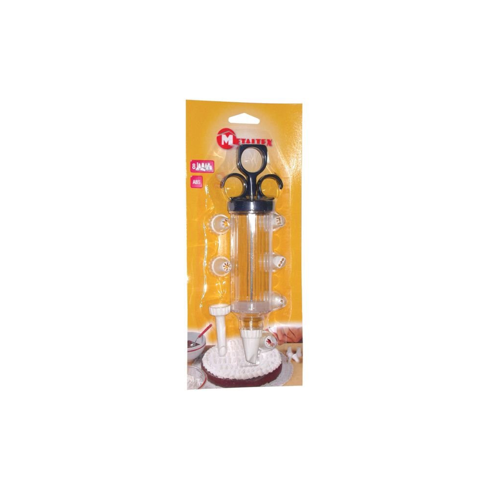 Pour des décorations de pâtisserie précises et abouties, la seringue de décoration METALTEX avec ses 8 douilles est l'outil qu'il vous faut. Conçue pour écrire des mots, tracer des motifs ou réaliser des garnitures créatives à base de crème, elle offre une maîtrise remarquable du geste décoratif.