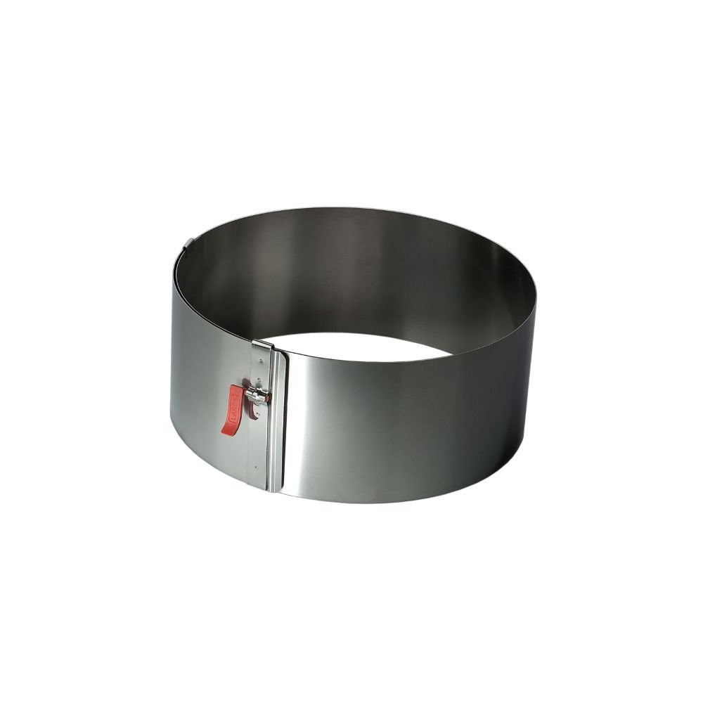 Grâce à sa hauteur généreuse de 10 cm, ce cercle est particulièrement adapté aux préparations volumineuses : fraisiers à étages, entremets mousses, bavarois à l'insert, charlottes garnies. En ajustant le diamètre à 30 cm maximum, vous pouvez accueillir de nombreux convives avec une seule préparation sans compromettre la régularité du montage.