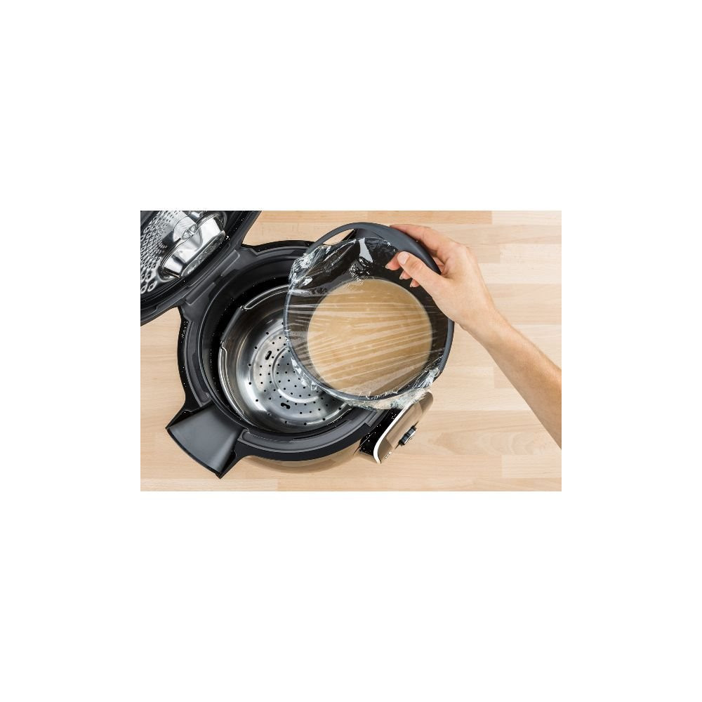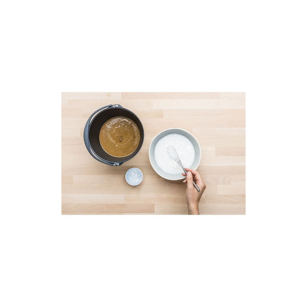 D'un diamètre de 18 cm, ce moule est dimensionné pour s'insérer parfaitement dans la cuve du Cookéo. Il permet de réaliser une grande variété de recettes : flans, moelleux au chocolat, clafoutis, gâteaux, mais aussi des préparations salées comme les cakes, tourtes et pains de viande. Sa anse en silicone facilite grandement la manipulation, même quand le moule est chaud en sortie de cuve.
