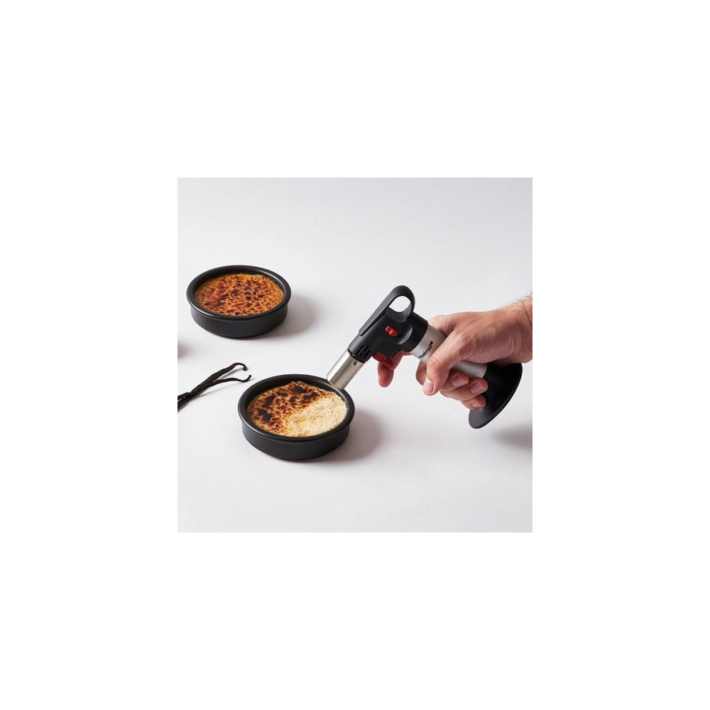 Les usages sont nombreux : caraméliser crèmes brûlées et tartes meringuées, faire fondre du fromage, peler tomates et poivrons, brunir viandes et poissons, flamber des noix de Saint-Jacques ou encore réaliser des décorations en sucre et chocolat. Un seul outil suffit pour une multitude de techniques culinaires avancées.