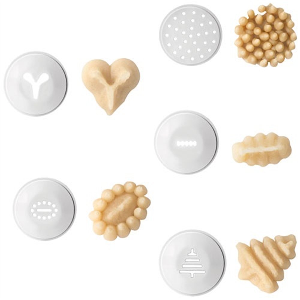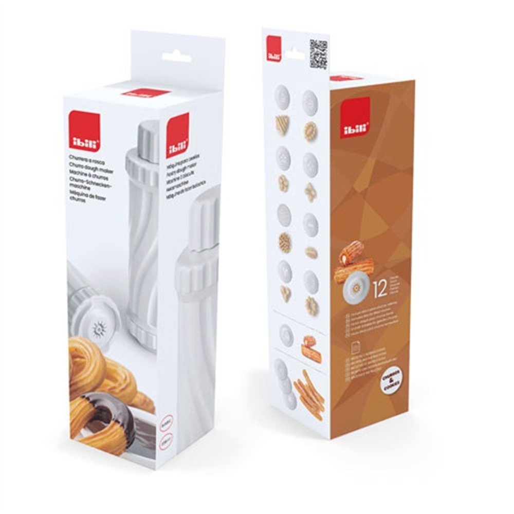 Conçue pour une prise en main immédiate, la machine IBILI fonctionne avec un mécanisme simple à visser : remplissez le cylindre de pâte, vissez le disque de votre choix, puis faites pivoter pour faire sortir régulièrement la pâte dans l'huile de friture ou sur la plaque de cuisson. Plusieurs disques interchangeables sont fournis pour varier les formes selon vos envies : churros ronds, étoilés, ou biscuits sablés festifs.