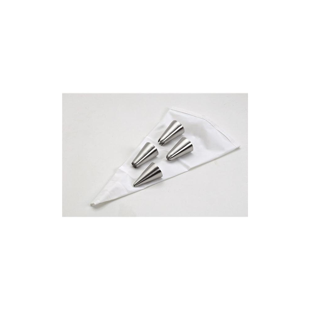 Poche à décorer + 4 douilles - Pour décorer et personnaliser vos desserts préférés - Poche en plastique polypropylène souple - Hauteur 30 cm - Avec 4 douilles inox - À chaque douille son utilisation pour décorer vos pâtisseries comme un grand chef !