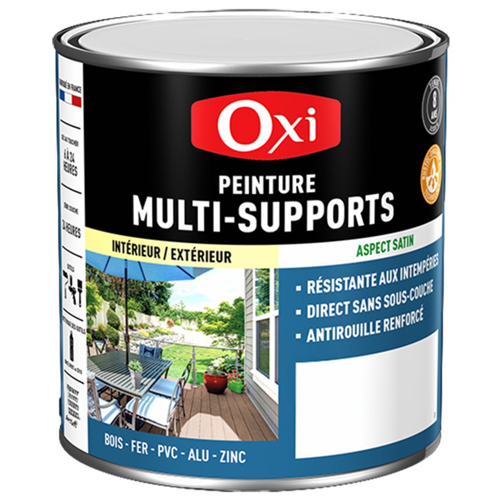 Existe en plusieurs coloris La peinture satin multi-support TOP3 de 2.5 L en coloris gris clair RAL7035 de la marque Oxi est destinée à la décoration et la protection de nombreux matériaux bois, fer, PVC, métaux non ferreux, intérieurs et extérieurs. TOP3+ est une formule solvantée composée de résines de qualité supérieure et renforcée grâce à la « RUSTOL Technology ». Sur BOIS, TOP3+ est microporeux et protège de l'humidité, il s'oppose, sans cloquer, au vieillissement et à la dégradation des b