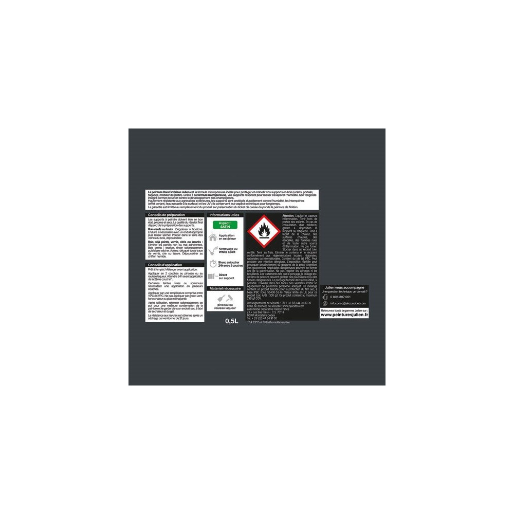 Ce gris anthracite s'adapte aussi bien aux volets en bois des maisons modernes qu'aux portails, clôtures, pergolas ou mobilier de jardin que l'on souhaite habiller d'une teinte actuelle et tranchante. La formule microporeuse garantit une protection optimale sans altérer la structure du bois, pour un résultat esthétique impeccable qui dure dans le temps. Retrouvez cette peinture chez Brikoleur avec d'autres coloris de la gamme Julien.