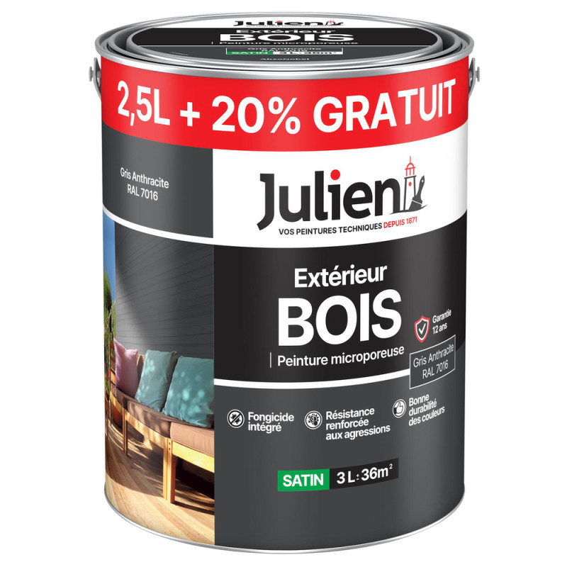 JULIEN - Peinture Extérieure Bois Microporeuse 2,5L +20%GRATUIT
