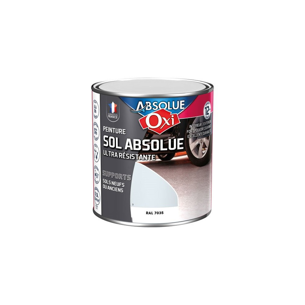 Lumineuse et polyvalente, la peinture Sol Absolue OXI en coloris gris clair RAL7035 au format 0,5 litre est la solution idéale pour redonner éclat et propreté à vos surfaces de sol. Ce gris clair très répandu dans les environnements professionnels et résidentiels apporte clarté et sentiment d'espace, tout en offrant une excellente résistance aux usages intensifs. Sa teinte normalisée RAL7035 garantit une couleur reproductible et précise.