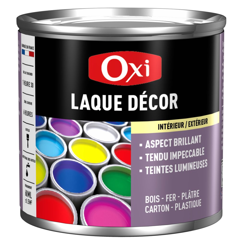 La Laque Décor OXI en pot de 60ml séduit les amateurs de DIY et les passionnés de décoration grâce à sa finition satinée brillante particulièrement soignée. À mi-chemin entre la peinture mate et le vernis brillant, le rendu satiné apporte de la profondeur et de l'éclat à tous vos supports, sans effet trop prononcé. Idéale pour décorer, personnaliser ou retoucher en toute simplicité.