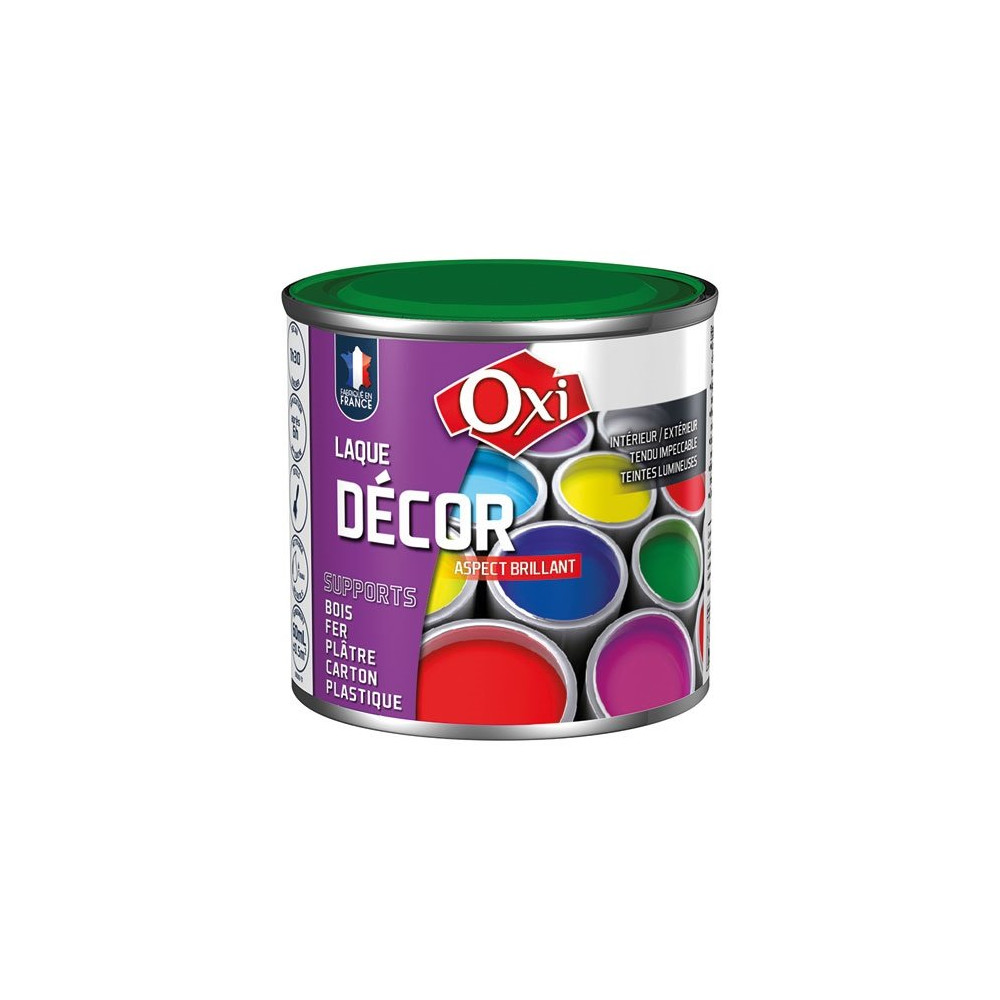 Donnez une nouvelle vie à vos objets et mobilier grâce à la laque décor OXI en coloris vert jardin, un teinte végétale et rafraîchissante qui s'invite aussi bien dans vos intérieurs que sur vos créations extérieures. Ce flacon de 60 ml au fini brillant est idéal pour les petits projets de décoration, les retouches précises ou la personnalisation d'accessoires du quotidien.