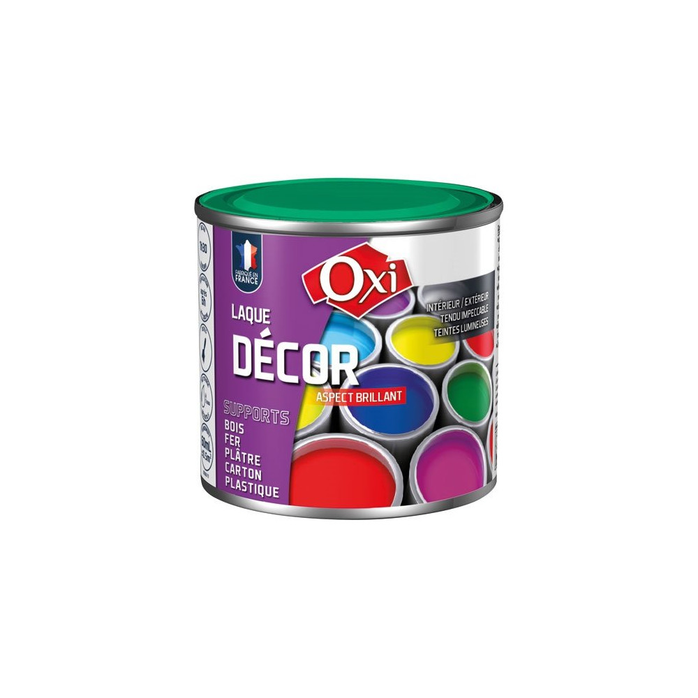 Existe en plusieurs coloris La laque décor aspect brillant de 60 mL en coloris émeraude de la marque OXI est multi-supports. Elle permet de décorer et retoucher tous les objets, meubles, bibelots et menuiseries. Elle s'applique en intérieur et en extérieur sur le fer, bois, plâtre, cartons, plastiques et elle offre un fort pouvoir couvrant ainsi qu'une excellente résistance aux chocs et aux rayures. Pour 8 à 10 m²/L. Peinture prête à l'emploi. A appliquer au pinceau en une ou deux couches en fon