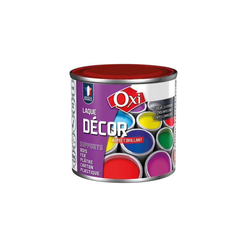 Existe en plusieurs coloris La laque décor aspect brillant de 60 mL en coloris rouge rubis de la marque OXI est multi-supports. Elle permet de décorer et retoucher tous les objets, meubles, bibelots et menuiseries. Elle s'applique en intérieur et en extérieur sur le fer, bois, plâtre, cartons, plastiques et elle offre un fort pouvoir couvrant ainsi qu'une excellente résistance aux chocs et aux rayures. Pour 8 à 10 m²/L. Peinture prête à l'emploi. A appliquer au pinceau en une ou deux couches en