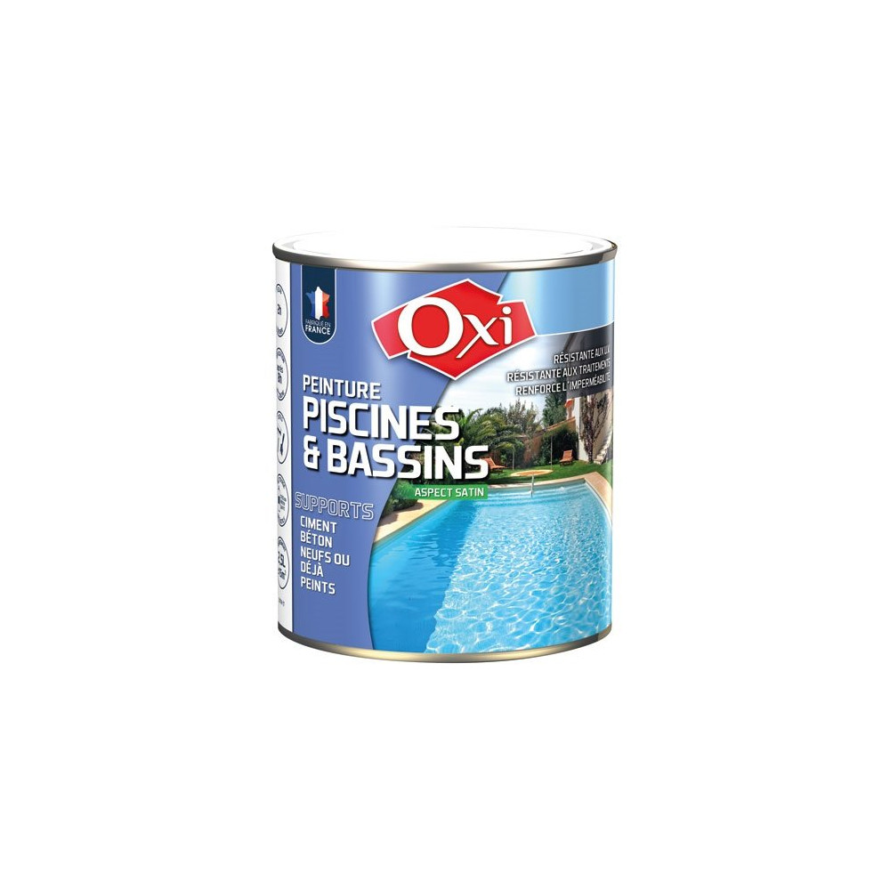 Redonnez éclat et protection à votre piscine ou votre bassin avec la peinture OXI Absolue coloris bleu azur en bidon de 2,5 litres. Spécialement formulée pour les surfaces en contact permanent avec l'eau, elle convient aussi bien aux piscines enterrées qu'aux bassins ornementaux, en intérieur comme en extérieur.