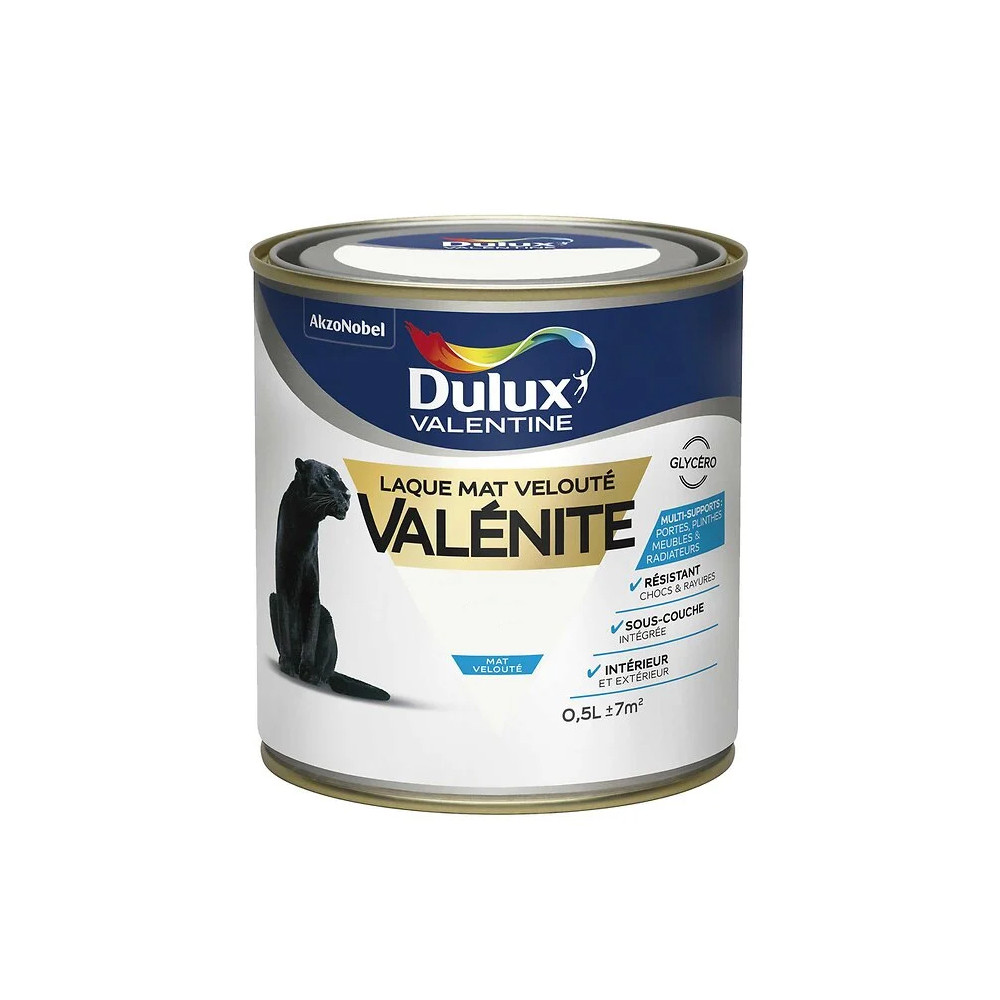La Dulux Valentine Laque Valénite Mat Velouté en pot de 0,5 L est une laque à base solvantée reconnue pour sa robustesse et ses qualités esthétiques. Son aspect mat velouté confère aux surfaces traitées une élégance discrète et moderne, sans effet brillant, idéale pour les intérieurs contemporains qui privilégient la sobriété et la douceur des matières.