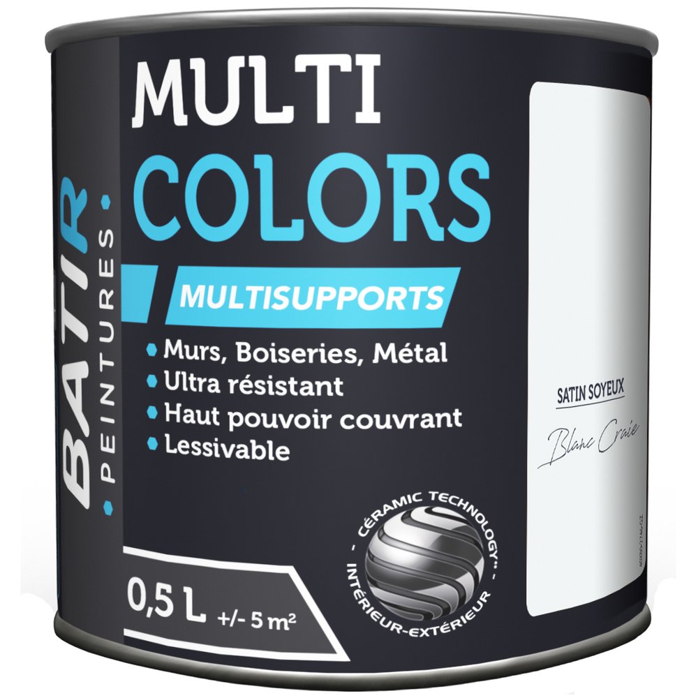 La peinture Multicolors Satin Soyeux BATIR en coloris Blanc Craie, en format 0,5 L, s'impose comme un incontournable des décorations intérieures au style campagne chic, Scandinave ou bohème. Le blanc craie, légèrement mat dans ses tons, évoque la douceur et l'authenticité, apportant une atmosphère apaisante et naturelle à chaque espace.