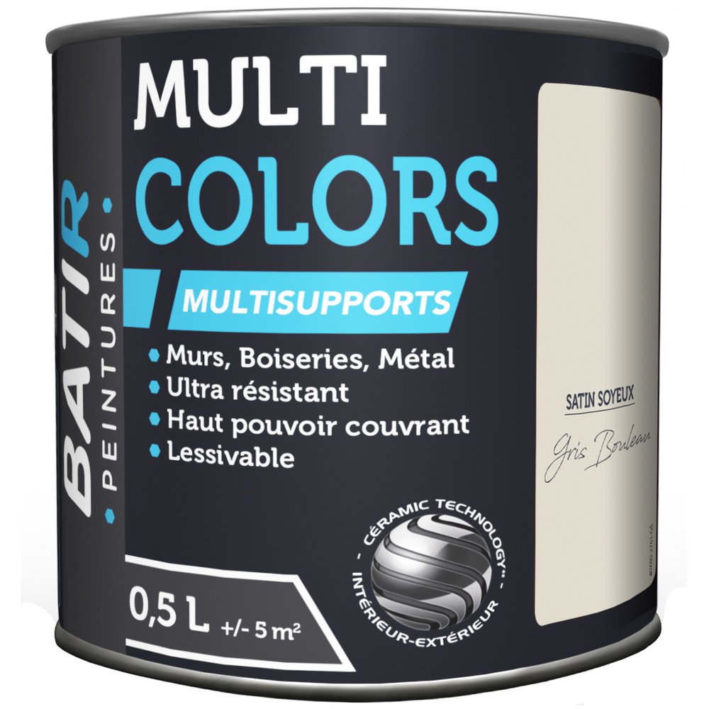 Intemporelle et polyvalente, la peinture Multicolors Satin Soyeux BATIR en coloris Gris, en format 0,5 L, est un classique indémodable de la décoration intérieure. Ce gris neutre et équilibré se fond dans tous les styles d'intérieur — du contemporain épuré au scandinave minimaliste — et s'associe facilement à d'autres teintes pour créer des ambiances harmonieuses.