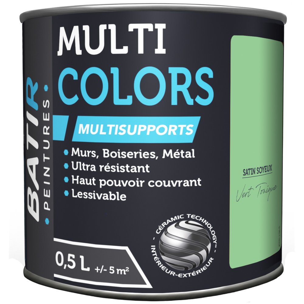 Appliquez en deux couches fines avec un pinceau ou un rouleau mousse. Ce format 0,5 L compact est facile à manipuler, à ranger et à retrouver chez Brikoleur parmi toute la gamme Multicolors BATIR.