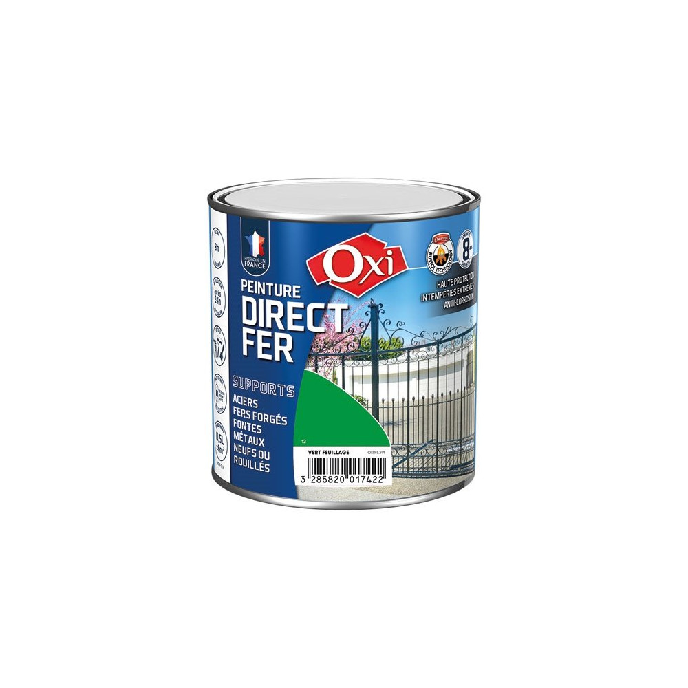 Avec son coloris vert feuillage discret et naturel, cette peinture OXI s'intègre avec élégance sur un portail de jardin, une clôture, une pergola en fer ou du mobilier de terrasse. Le format 500 ml permet de couvrir des surfaces de taille intermédiaire et d'effectuer plusieurs passes si nécessaire pour un rendu homogène et brillant.