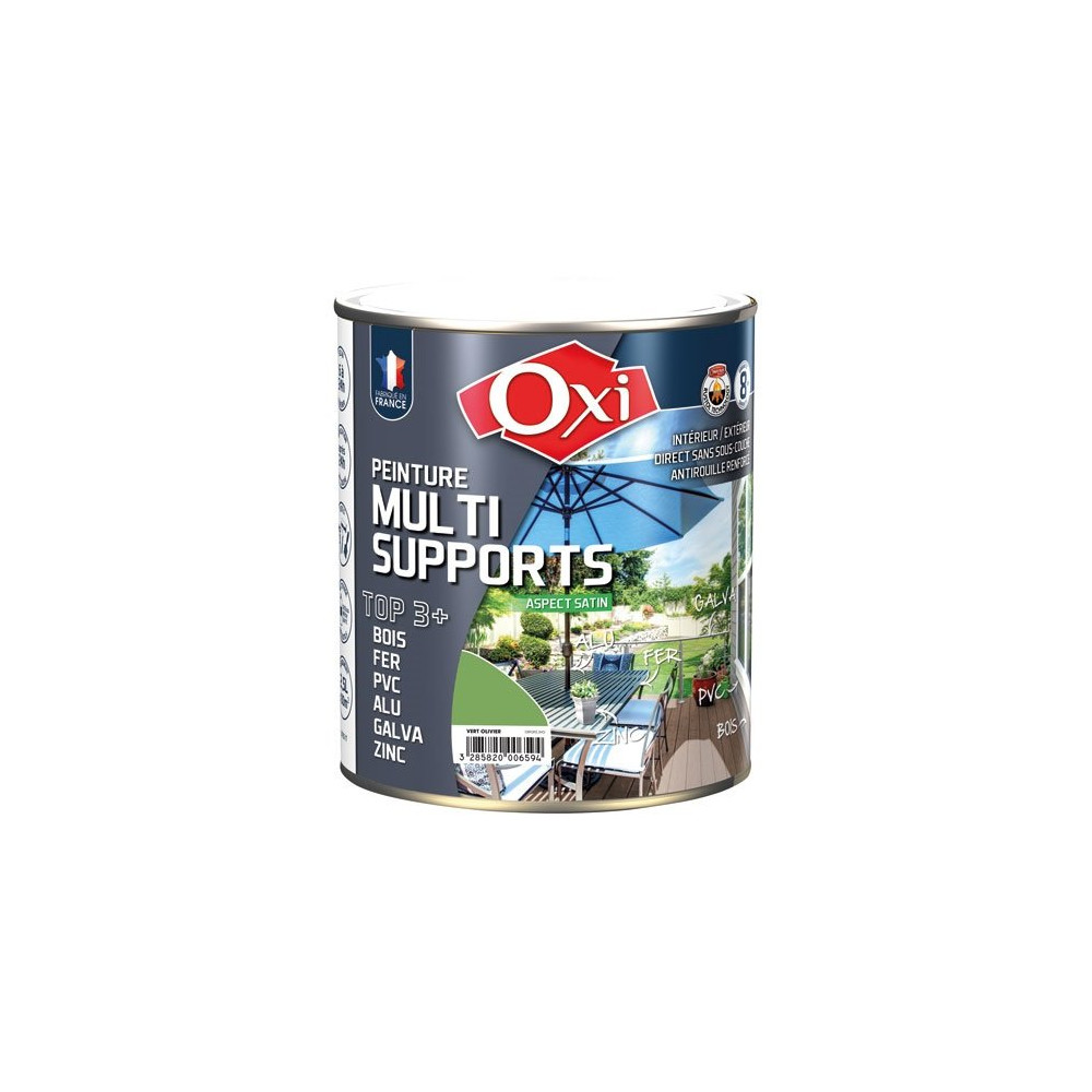 Apportez une touche naturelle et raffinée à vos surfaces avec la peinture TOP 3 OXI en vert olivier (RAL 6021). Ce bidon de 2,5 litres à finition satinée offre une teinte douce et végétale, parfaite pour harmoniser portails, volets, mobiliers de jardin ou boiseries dans un esprit authentique et contemporain.