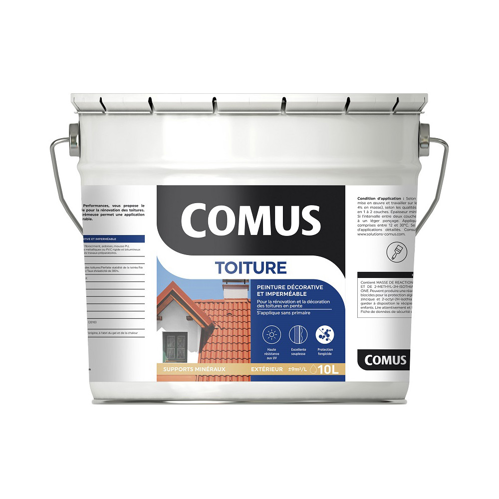 Redonner vie à une toiture vieillie et l'imperméabiliser durablement, c'est précisément la mission de la peinture de toiture COMUS en fût de 10 litres. Formulée en phase aqueuse, cette peinture d'imperméabilisation convient à la rénovation et à la décoration des toitures présentant une pente supérieure à 3% (≥ 5°).