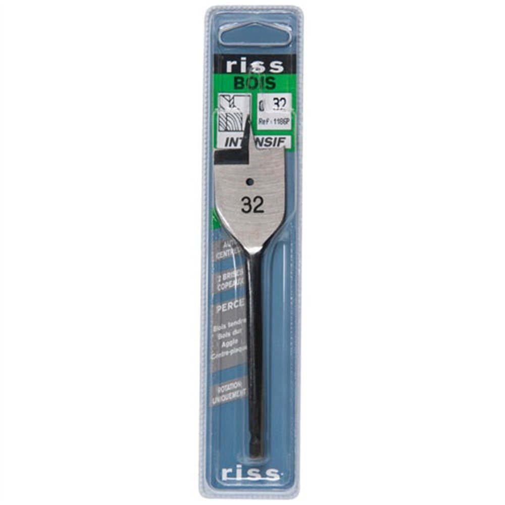 Pour les perçages de grand diamètre dans le bois, rien de tel que la mèche bois plate fraisée RISS de 32 mm. Conçue pour attaquer les matériaux ligneux avec précision, elle s'impose dans les travaux de menuiserie, d'électricité et de plomberie où des passages larges sont indispensables. La géométrie fraisée de ses tranchants assure des entrées de trous impeccables, sans éclats ni bavures.