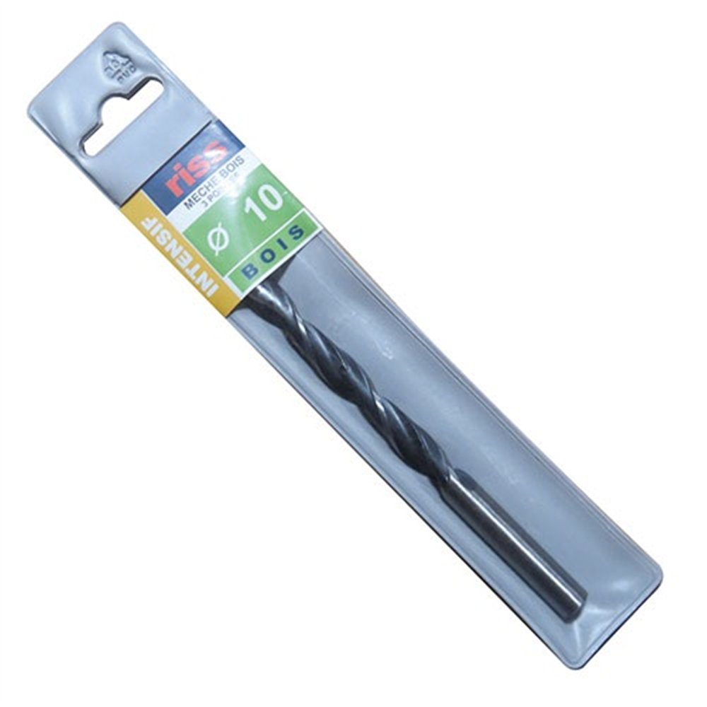 Destiné aux perçages de grand diamètre dans le bois, le foret bois 3 pointes RISS diamètre 10 mm conjugue puissance de coupe et précision de finition. Sa conception à trois pointes — une centrale et deux latérales — lui permet d'attaquer le bois avec une entrée de matière franche et de délivrer un perçage d'un diamètre de 10 mm aux bords parfaitement nets, sans fibres arrachées ni bords ébréchés.
