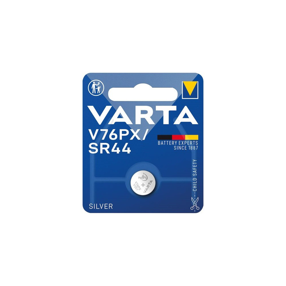 Précise et fiable, la pile bouton oxyde d'argent Varta V76PX / SR44 est la référence incontournable pour les montres-bracelets et instruments de précision. Fabriquée selon les standards de qualité les plus exigeants de la marque Varta, cette pile Silver garantit une tension stable tout au long de sa décharge, un critère essentiel pour assurer l'exactitude d'une montre.
