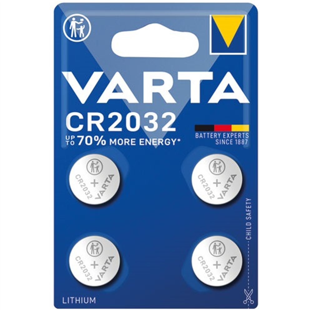 La pile bouton lithium VARTA CR2032 est sans conteste la plus répandue au monde pour les appareils électroniques. Disponible ici en lot avantageux de 4 piles, elle couvre un spectre d'utilisation extrêmement large : des cartes mères de PC aux clés de voiture connectées, en passant par les montres, les capteurs de pression de pneus (TPMS), les calculatrices et les appareils médicaux.