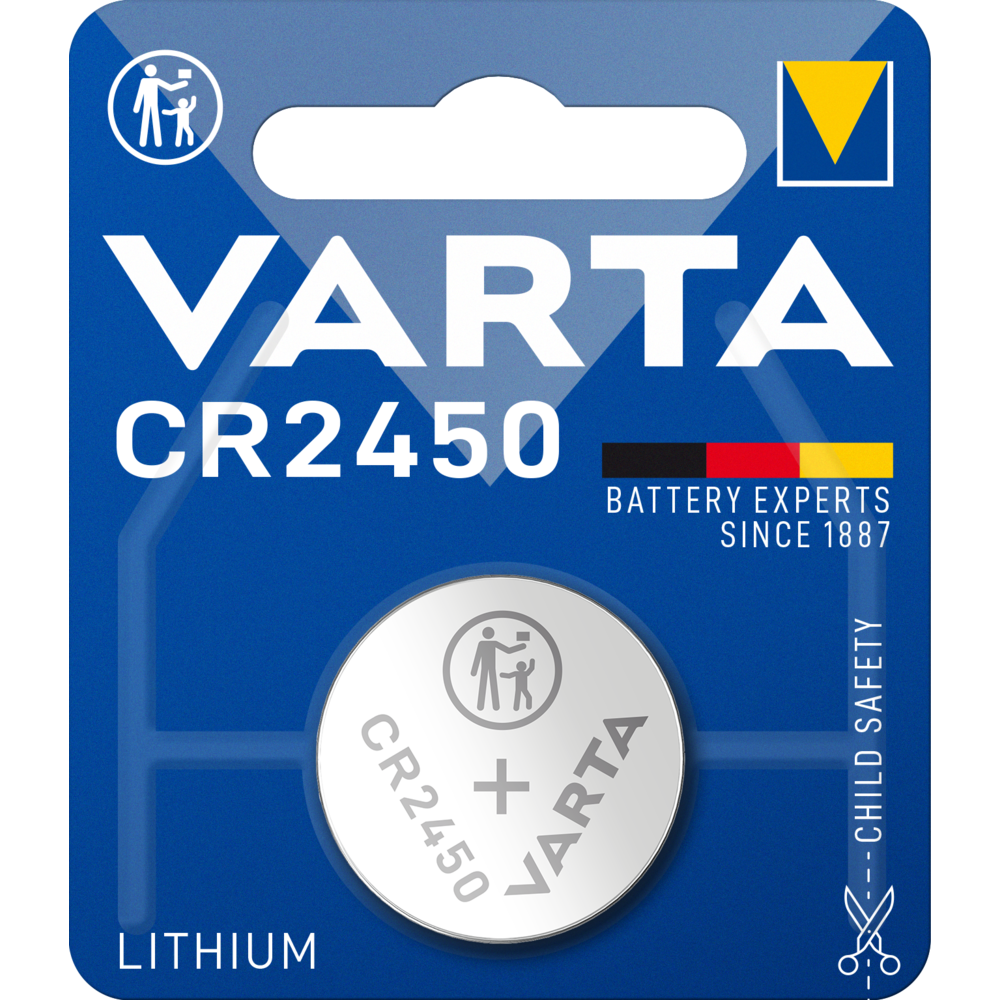 La pile lithium CR2450 3V VARTA est une pile bouton électronique de haute capacité, pensée pour alimenter de façon autonome et durable les appareils électroniques du quotidien. Avec sa tension de 3V stable et sa technologie lithium performante, elle s'impose comme la référence pour tous les dispositifs nécessitant une alimentation longue durée en format compact.