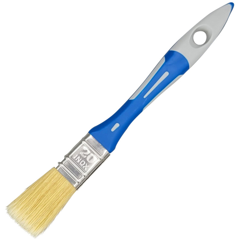 Pinceau plat bi-matière avec manche ergonomique. | Virole inoxydable, pas de trace de rouille après nettoyage. | Fibres TOP-PERFECT sans perte de poils. | Manche bi-injection. | Virole inoxydable. | Origine France garantie