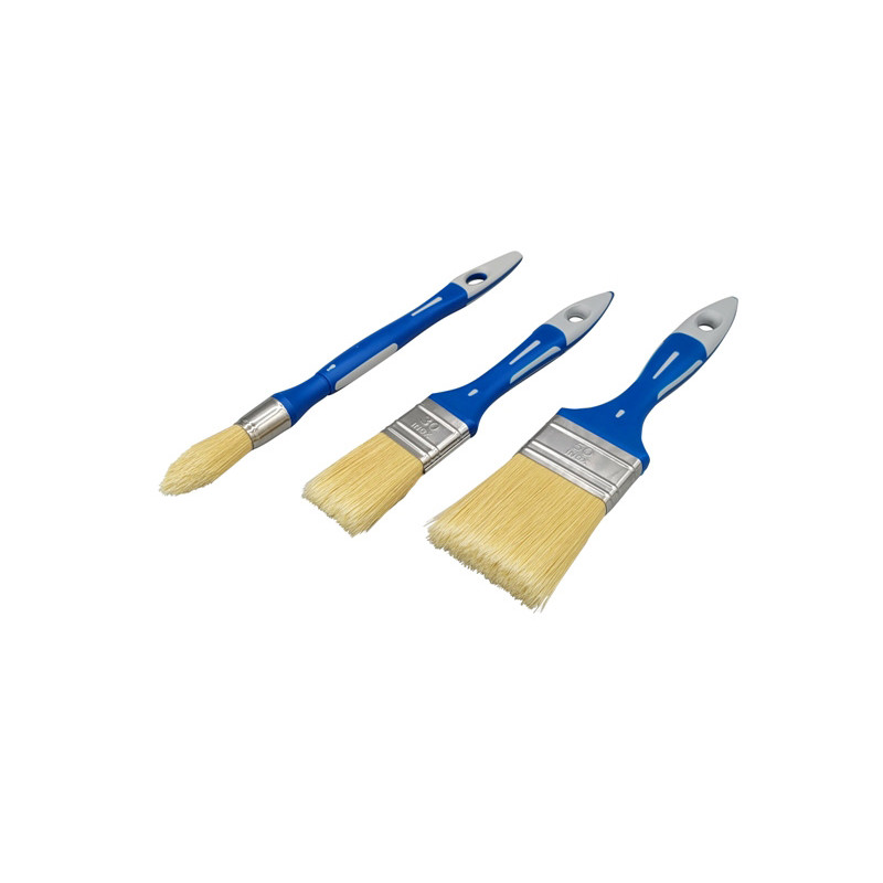 La composition du lot a été pensée pour couvrir tous les besoins d'une mise en peinture complète : deux pinceaux plats aux largeurs complémentaires pour les grandes surfaces et les zones intermédiaires, et un pinceau à réchampir pour soigner les finitions aux angles et aux bords. Le manche bi-matière assure un confort de prise en main optimal, même lors des sessions de travail prolongées.