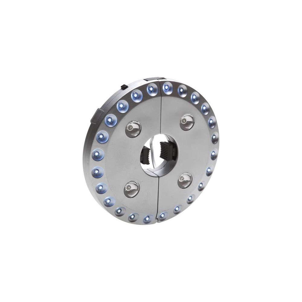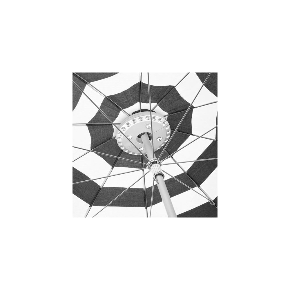 Sa polyvalence est l'un de ses grands atouts : elle s'adapte sur les tubes de parasol de 2,4 à 4,5 cm de diamètre, et dispose également d'anneaux de fixation à l'arrière pour un accrochage sur toile ou structure. Ses 28 LED délivrent un flux lumineux de 50 lumens avec une autonomie de 10 heures, et sa portée lumineuse atteint 10 mètres.