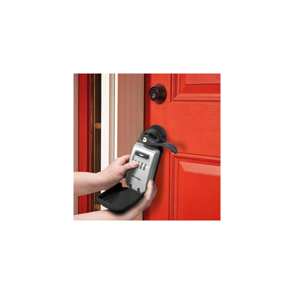 La boîte à clé à combinaison Master Lock avec anse ajustable est la solution intelligente pour ne plus jamais être bloqué dehors et partager l'accès à votre domicile en toute sécurité. Robuste et polyvalente, elle permet de ranger une ou plusieurs clés de maison dans un coffret sécurisé fixé directement sur la porte ou la façade.