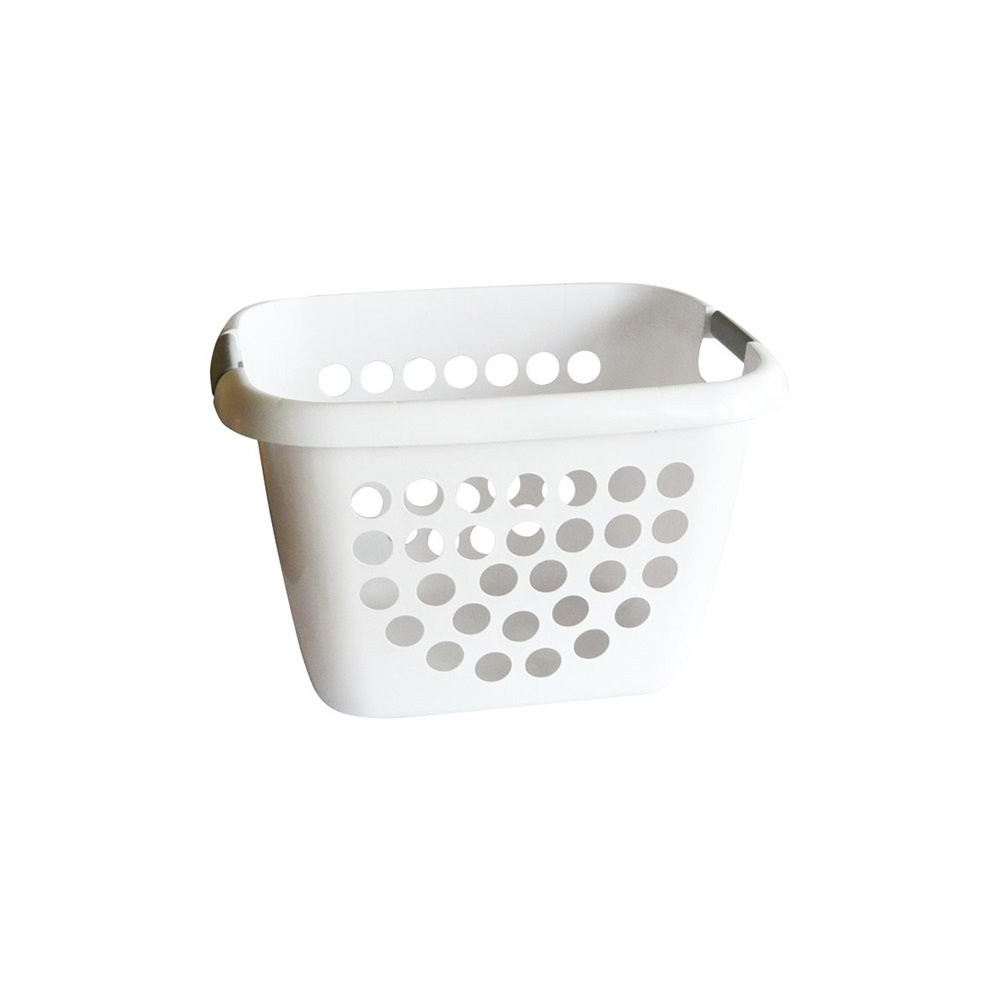 Sa conception bi-matière est pensée pour le confort au quotidien : le corps en plastique blanc résistant assure la rigidité de l'ensemble, tandis que les poignées grises anti-glissantes en matière souple facilitent le transport même lorsque le bac est plein. Les dimensions 45 x 35 x 29,5 cm offrent un volume généreux tout en conservant un gabarit compact et facile à déplacer.