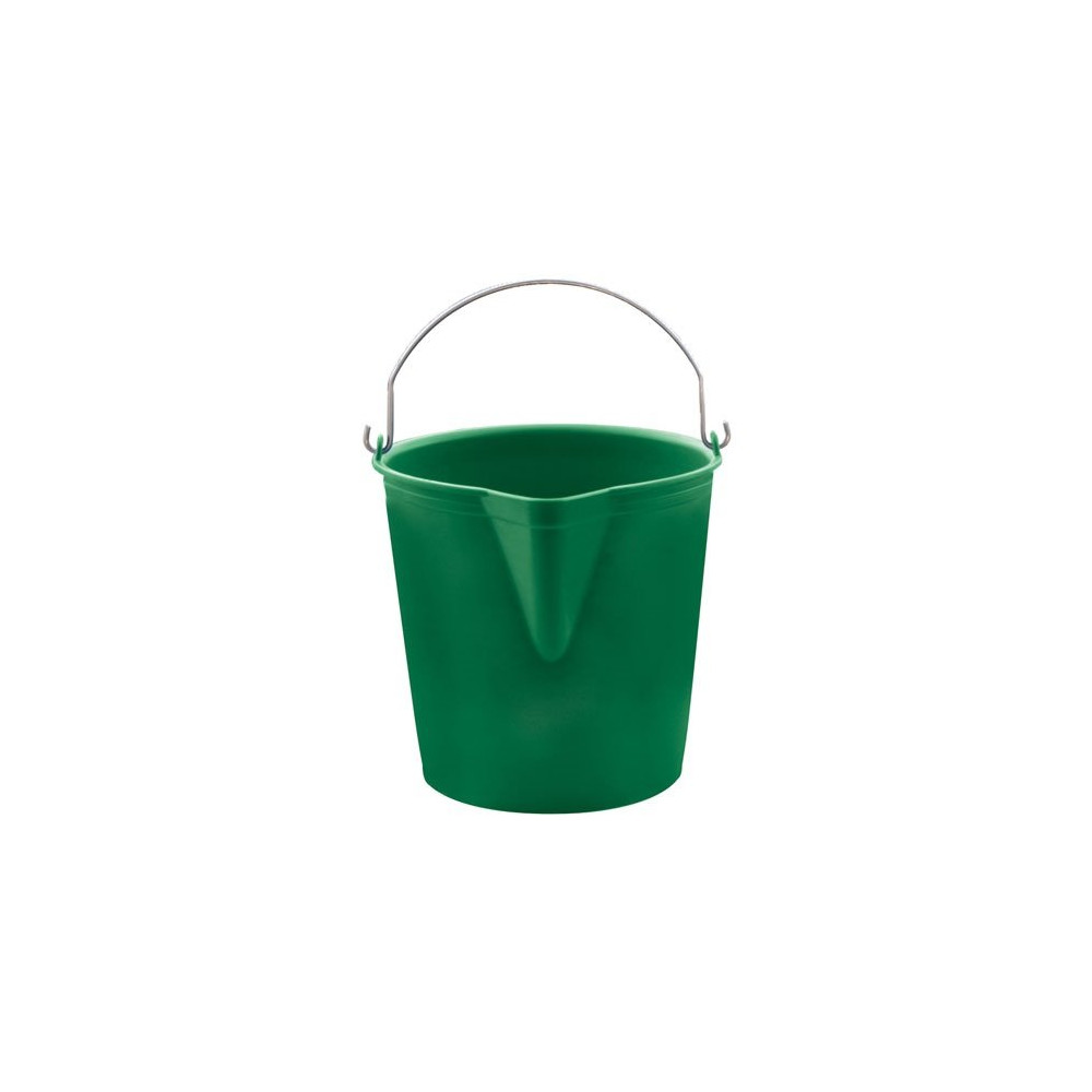 La teinte verte de ce seau à bec en fait un outil facilement identifiable dans un atelier, un jardin ou un local technique. Il convient aussi bien aux professionnels — agriculteurs, jardiniers, agents d'entretien — qu'aux particuliers bricoleurs pour des travaux de nettoyage ou de maçonnerie légère. Sa grande contenance de 17 litres réduit les allers-retours et optimise l'efficacité des tâches.