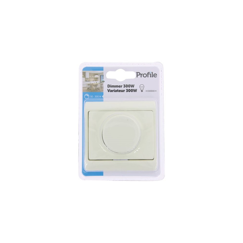 Le variateur d'éclairage à encastrer blanc 300W de la marque Profile est la solution idéale pour créer une ambiance lumineuse sur mesure dans n'importe quelle pièce. Grâce à sa molette de réglage progressive, il permet d'ajuster l'intensité lumineuse de 3W à 300W en toute fluidité, offrant un confort visuel adapté à chaque moment de la journée.