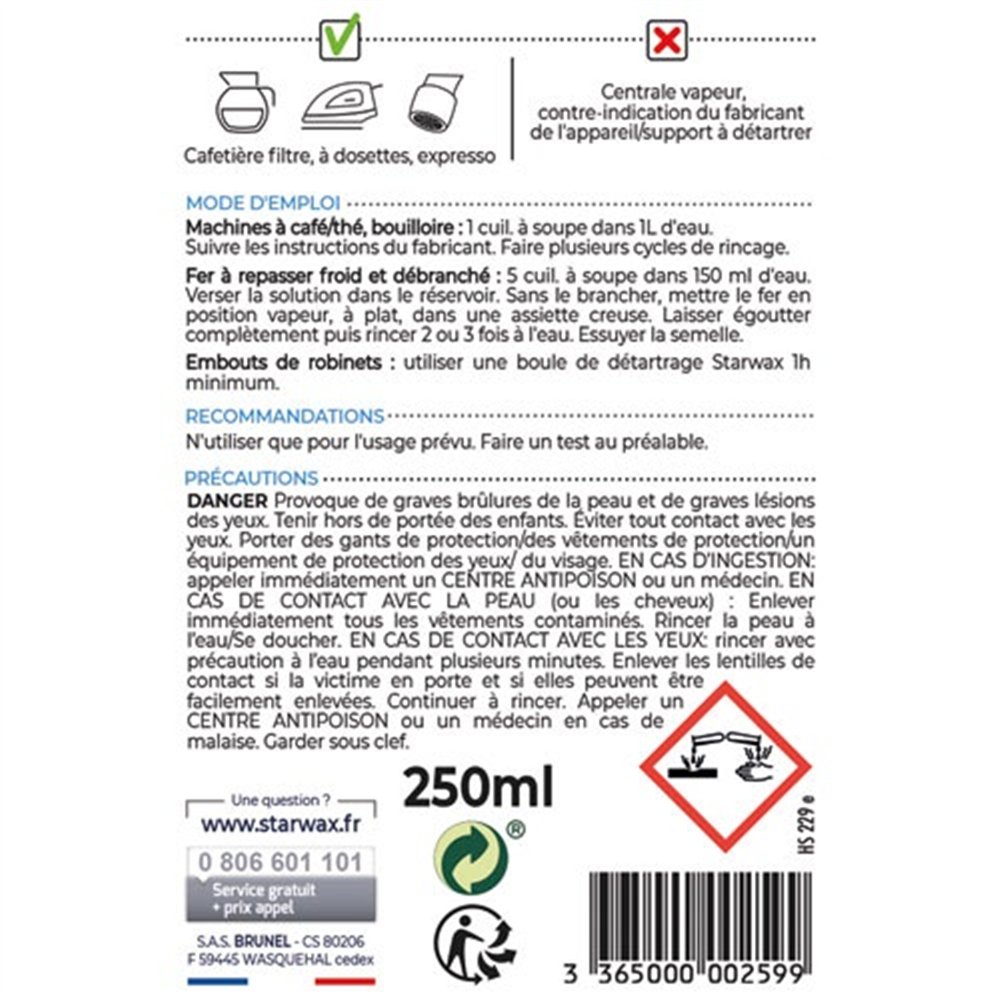 Le calcaire est l'ennemi silencieux de vos appareils électroménagers : il réduit leurs performances, augmente leur consommation d'énergie et raccourcit leur durée de vie. Le détartrant spécial appareils ménagers STARWAX en flacon de 250 ml a été formulé pour éliminer efficacement les dépôts calcaires incrustés dans les circuits et résistances, et redonner à vos équipements toute leur efficacité.