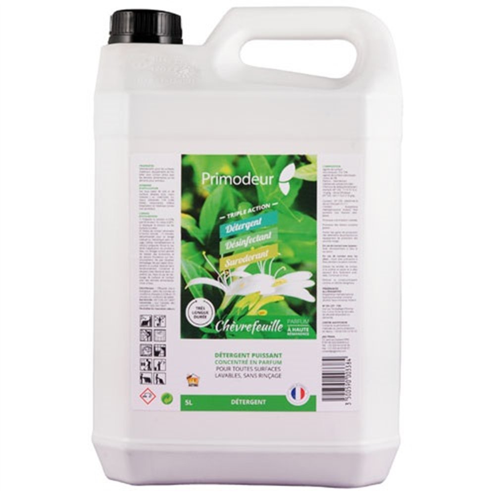 Avec le Primodeur 3D Chèvrefeuille 5 litres, le nettoyage de vos sols et surfaces lavables devient plus efficace et laisse un parfum durable et agréable de chèvrefeuille. Ce détergent professionnel à triple action est formulé pour répondre aux exigences les plus élevées en matière d'hygiène domestique et collective.