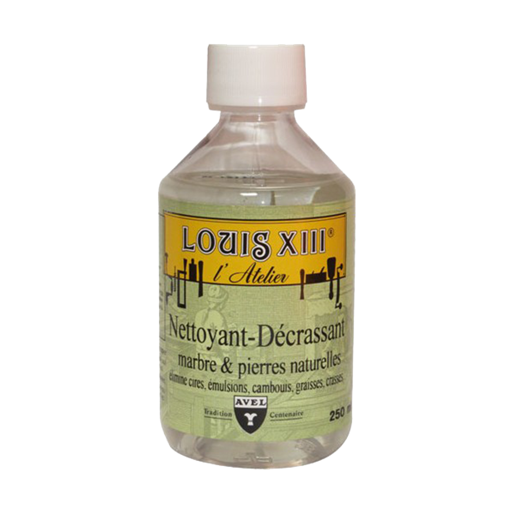 Le Décrassant Marbre Louis XIII en flacon 250ml est un produit technique formulé spécifiquement pour le nettoyage en profondeur des surfaces en marbre, granit, onyx et autres pierres naturelles encrassées. Il s'attaque efficacement aux dépôts tenaces que les nettoyants ménagers courants ne parviennent pas à éliminer.