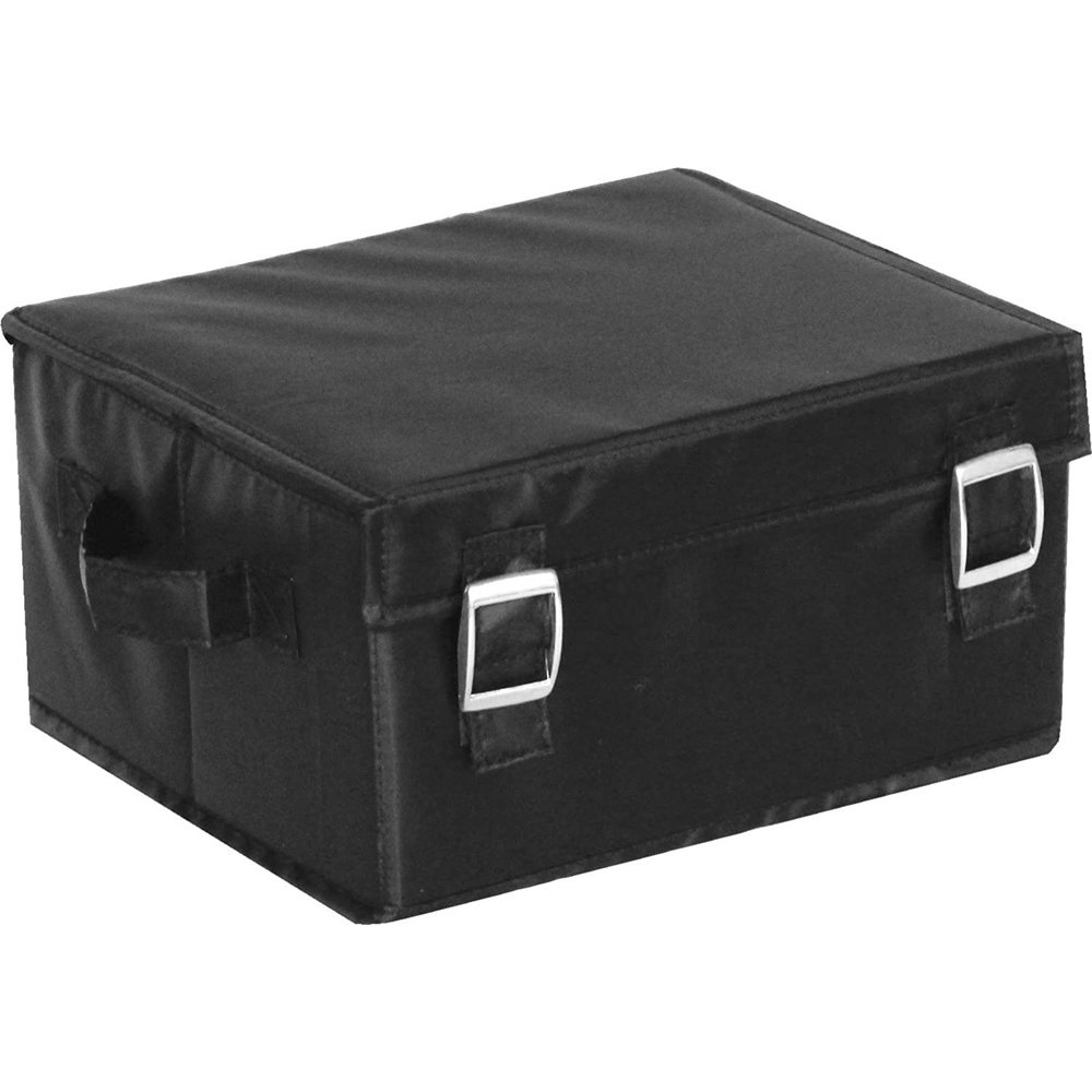 Boîte de rangement plastique et tissu noir avec couvercle. | 2 poignées. | Fermeture par velcro. | Moyen modèle.