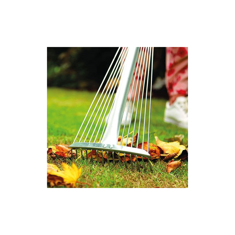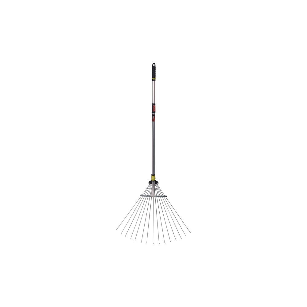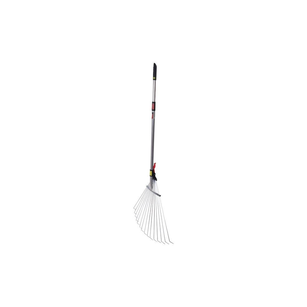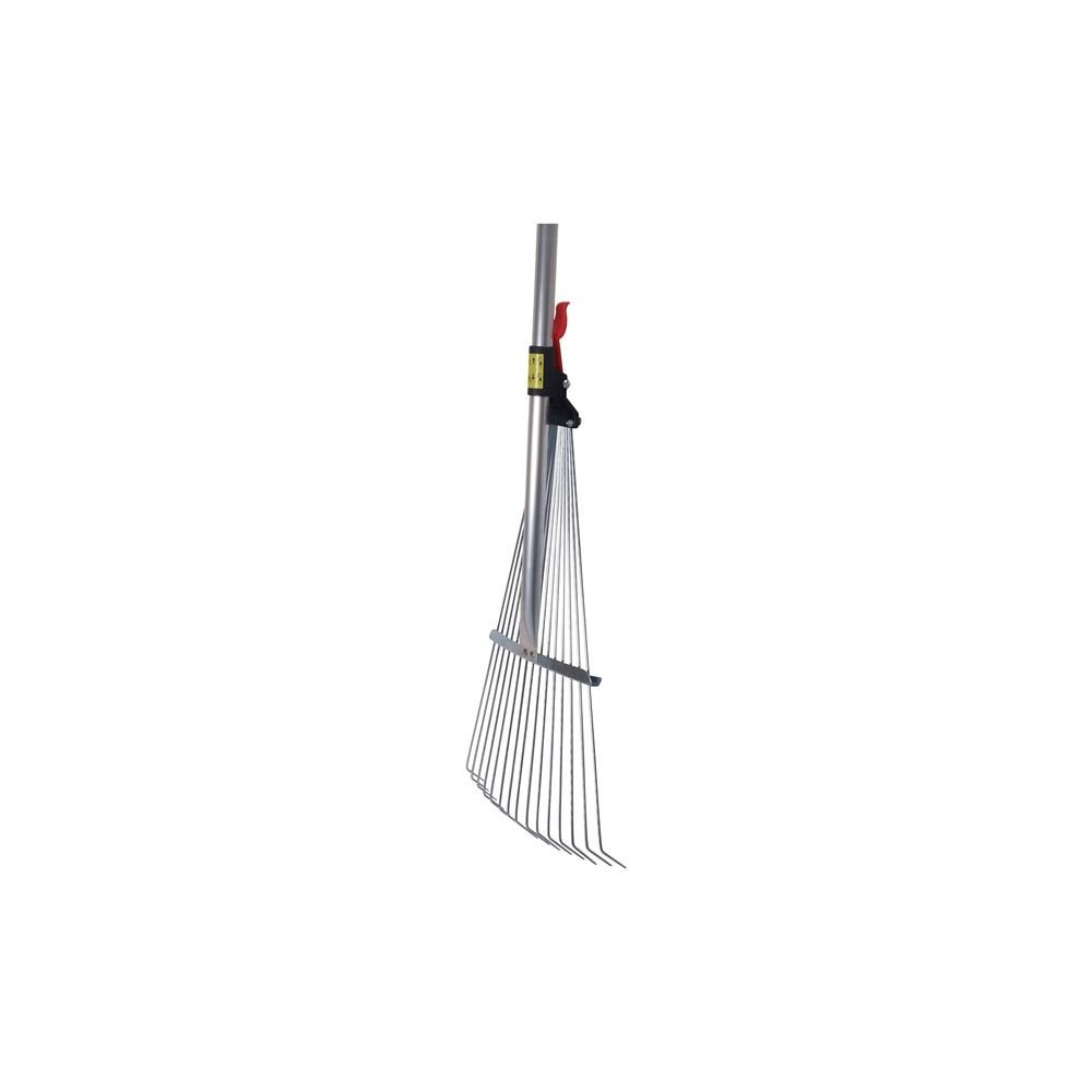 15 dents rondes à bout plat en acier dont la portée s'ajuste de 19 à 60 cm. Muni d'un manche télescopique en aluminium qui se déploie de 82 à 166 cm. Idéal pour le ramassage des feuilles.