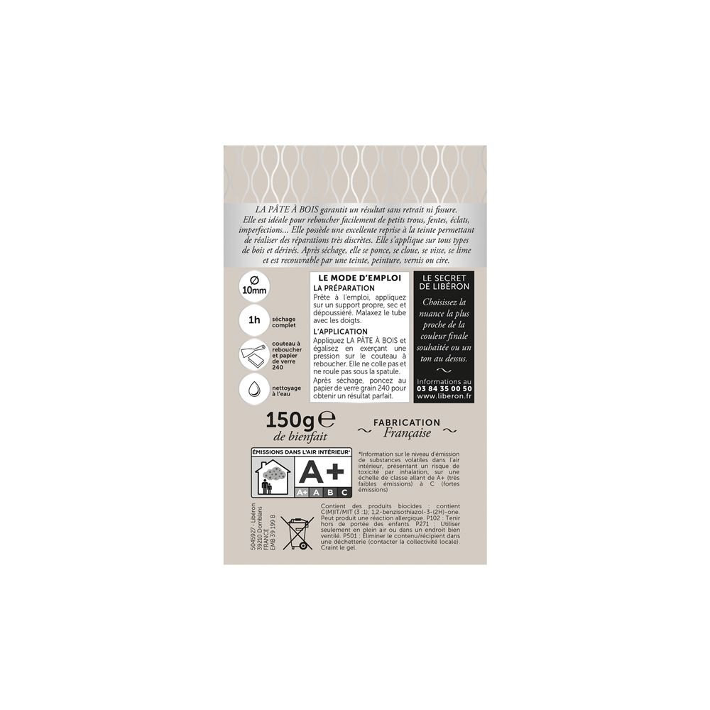 La pâte à bois Liéron teinte chêne clair en tube de 150g est la solution idéale pour réparer discrètement les imperfections de vos boiseries : trous de clous, petites fissures, éclats superficiels. Sa teinte chêne clair se marie parfaitement avec les bois blonds et les essences légères comme le hêtre, le pin ou le frêne, pour un résultat invisible une fois sec.