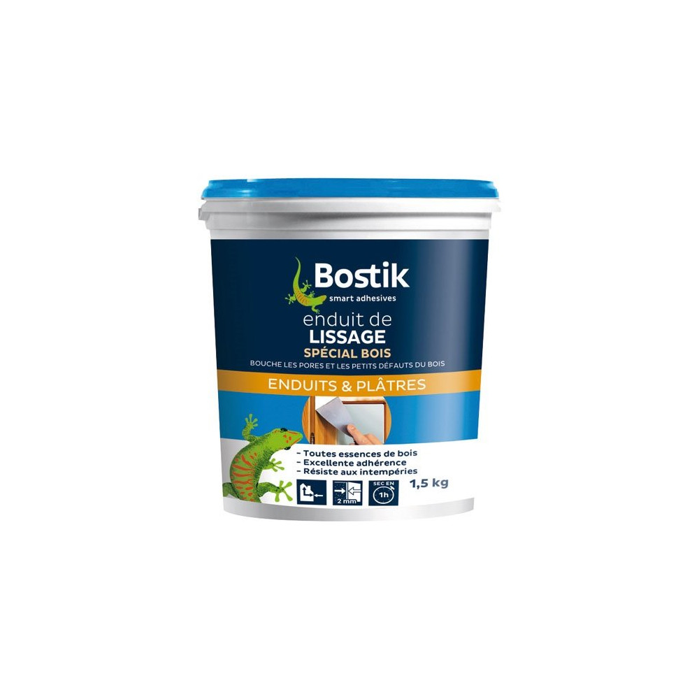 L'enduit de lissage spécial bois BOSTIK en pot de 1,5 kg est la référence pour préparer parfaitement toutes les surfaces en bois avant leur mise en peinture. Sa formule adaptée à la nature du bois pénètre en profondeur pour boucher efficacement les pores et corriger les petits défauts de surface tels que nœuds, micro-fissures ou irrégularités légères.