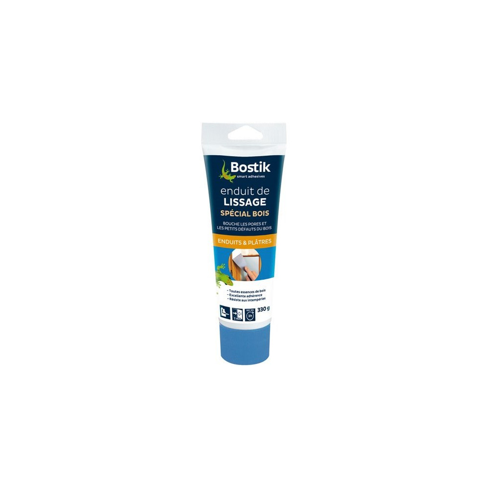 L'enduit de lissage spécial bois en tube de 330 g de la marque BOSTIK. Caractéristiques : Permet de boucher les pores et les petits défauts du bois avant mise en peinture. Toutes essences de bois. Couleur crème. Intérieur/Extérieur.