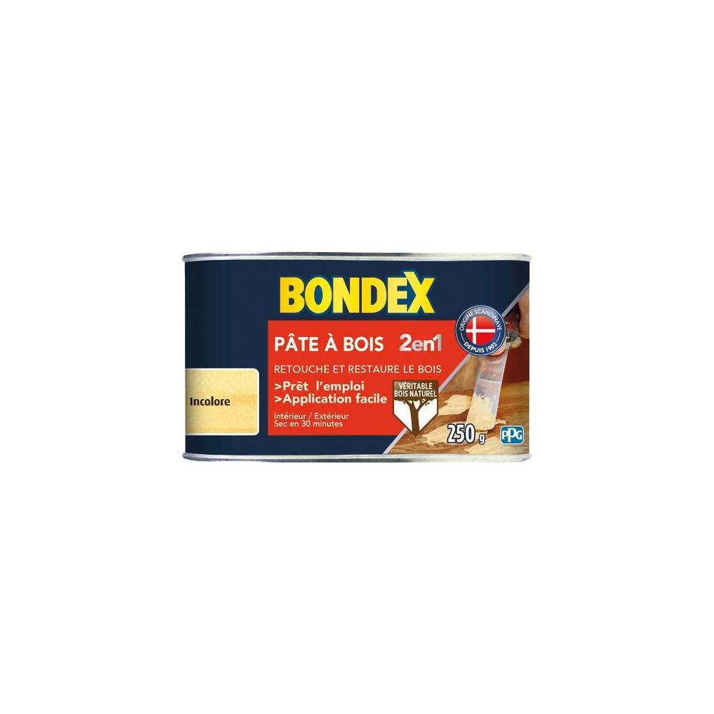 Spécialement formulée pour les bois bruts, non traités ou de teinte claire, la Pâte à bois BONDEX naturel en 250 g est une solution de rebouchage incontournable pour la restauration de meubles et boiseries. Sa couleur naturelle, proche du bois vierge, assure une discrétion maximale des réparations sur des essences comme le pin, l'épicéa, le bouleau ou le peuplier.