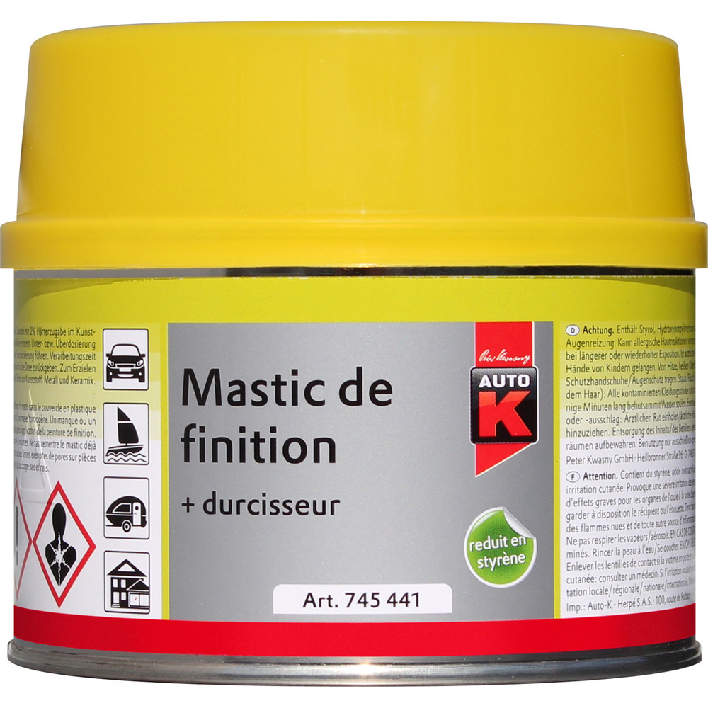 Retrouvez ce mastic de finition AUTO K chez Brikoleur, parmi nos produits de réparation métal sélectionnés pour leur rapport qualité-performance. Conseil d'expert : appliquez toujours le mastic de finition en dernière couche, sur un mastic de structure déjà durci et poncé au grain 120, pour un résultat digne des professionnels de la carrosserie.