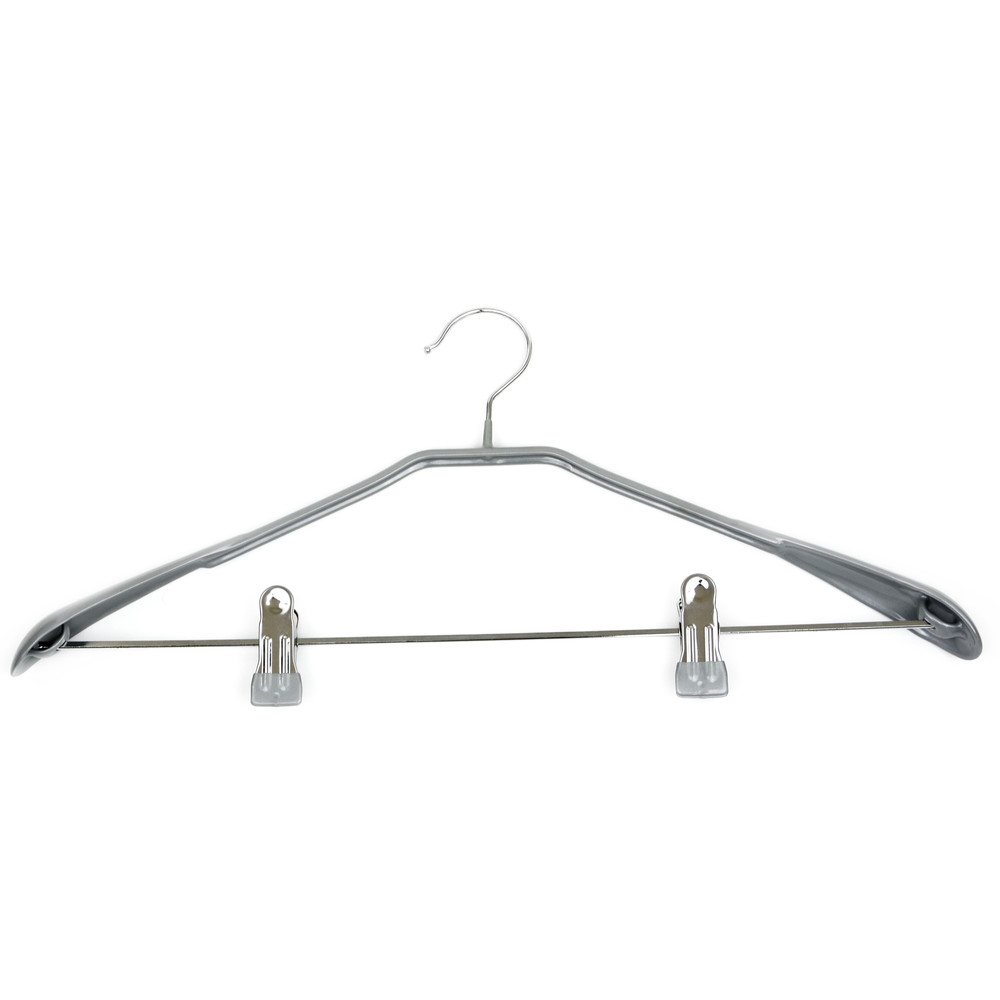 L'épaulement profilé préserve la forme des épaules de vestes et chemisiers tandis que les pinces antiglisse maintiennent fermement la jupe ou le pantalon sans laisser de traces sur le tissu. Ce cintre combiné est particulièrement apprécié pour composer et conserver des tenues prêtes à porter, gain de temps assuré le matin.