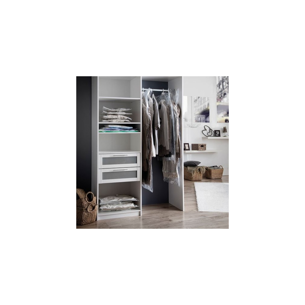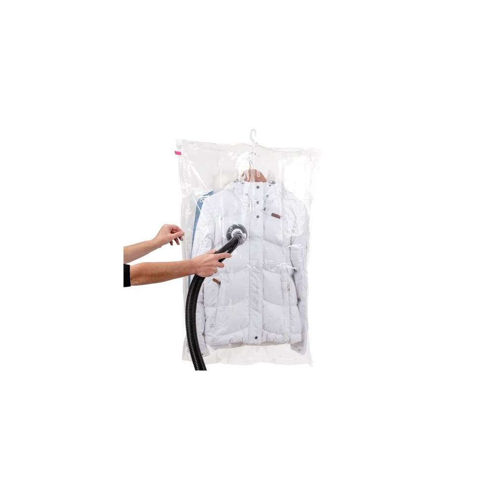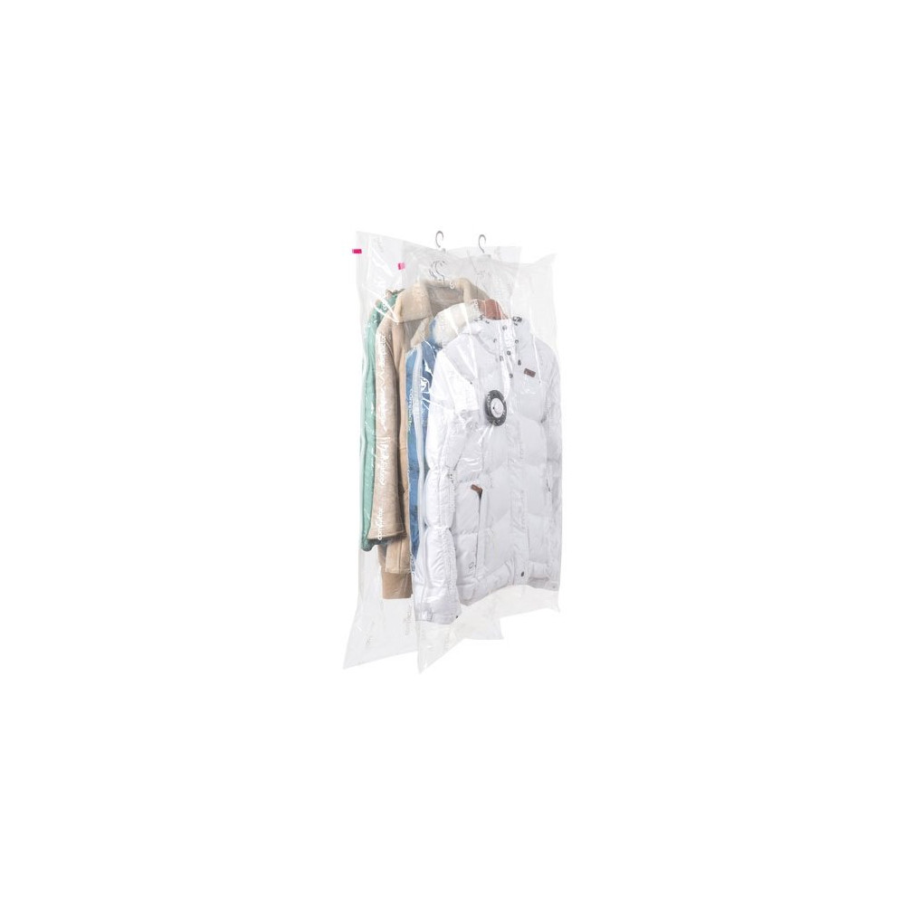 Ces deux housses permettent ensemble de ranger l'équivalent de 5 vestes et 5 manteaux, soit une capacité de rangement remarquable pour un espace minimal. Le crochet intégré facilite la pose et garantit une tenue stable sur la tringle de votre dressing, sans glissement ni décrochage intempestif.