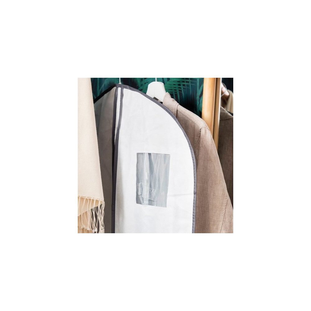Fabriquée en fibre non tissée 100 % polypropylène, cette housse est à la fois légère, respirante et résistante, permettant à vos vêtements de « respirer » tout en étant protégés. Sa teinte blanc liseré gris lui confère un aspect soigné et épuré, parfait pour un dressing organisé et esthétique. Une fenêtre transparente en PEVA vous permet d'identifier le vêtement stocké sans avoir à ouvrir la housse.