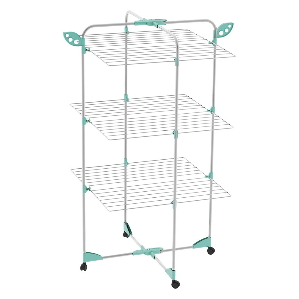 Le séchoir tour avec porte-cintres offre une capacité d'étendage de 30 mètres répartis sur 3 niveaux, idéal pour sécher une grande quantité de linge au même endroit. | Facilement pliable pour un rangement compact, il est équipé de roulettes pour