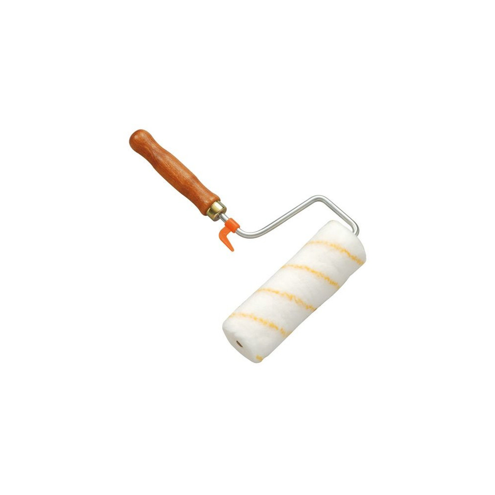 Côté technique, ce rouleau 180 mm est équipé de fibres antigoutte de 12 mm qui retiennent efficacement la peinture tout en garantissant une diffusion homogène à chaque passe. Le tube de 45 mm de diamètre offre une bonne rigidité, tandis que la tige en acier zingué de 7,6 mm résiste à la corrosion et supporte une utilisation intensive. Le manche en bois verni complète l'ensemble avec une prise en main solide et agréable.